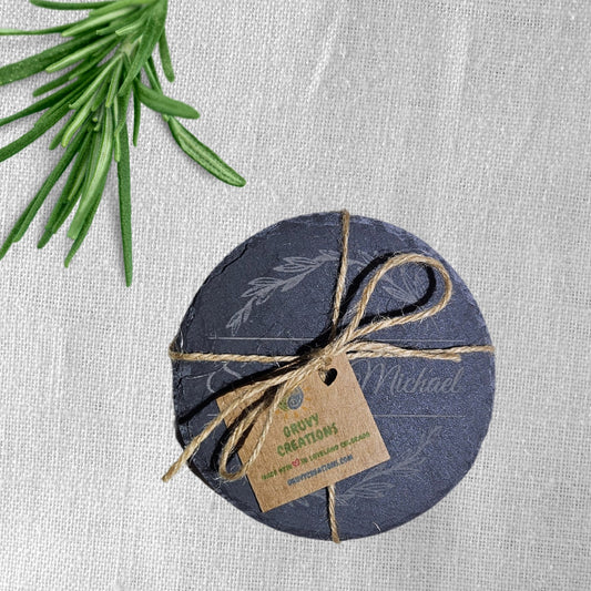 Personalized Slate Coasters 4 Pack, Wedding Gifts, Custom House Warming Gift, Drink Coasters