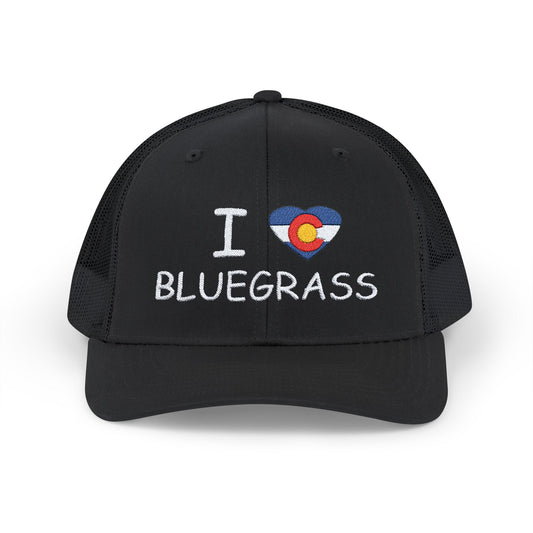 I Heart Love Bluegrass Snapback Embroidered Trucker Cap, Festival Hat