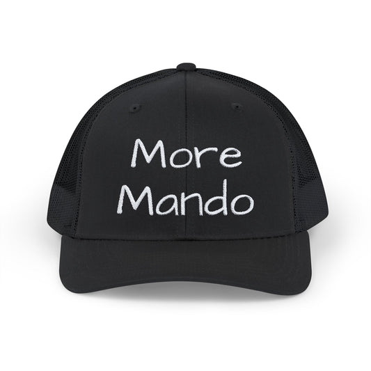 More Mando Snapback Embroidered Trucker Cap, Mandolin Player Gift, Festival Hat, Bluegrass