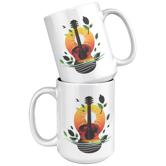 Guitar Sunset 15oz White Coffee Mug Guitar Player Gift, Guitar Lover Gift
